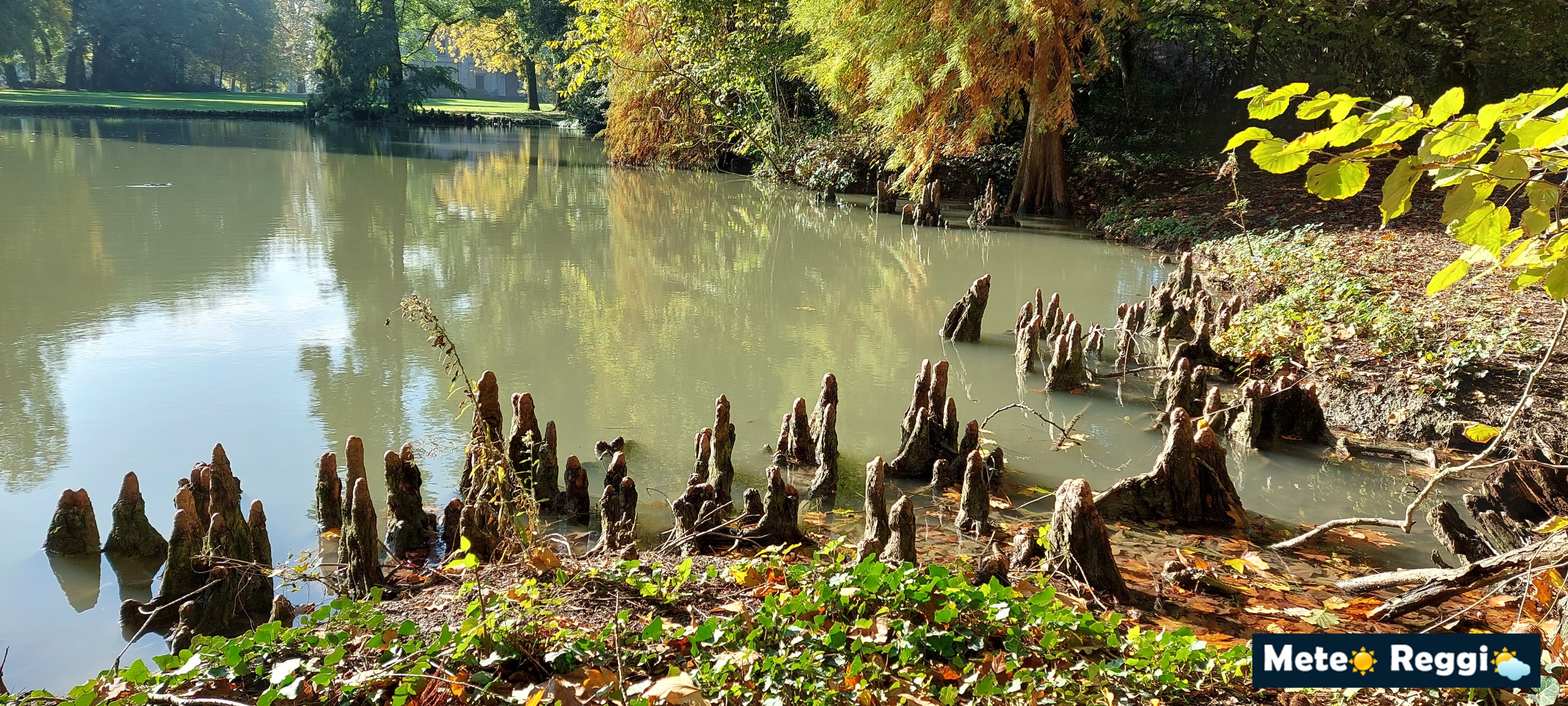 In queste immagini vediamo la chioma marrone/dorata dei nostri Cipressi calvi nei pressi di Lido Po a Luzzara e sono stati catturati da Vittorio Barbieri. Nella seconda immagine, invece, vedete le radici pneumatofore di altri Cipressi calvi che circondano il lago di Villa Spalletti a San Donnino di Liguria immortalati da noi 3 settimane fa.