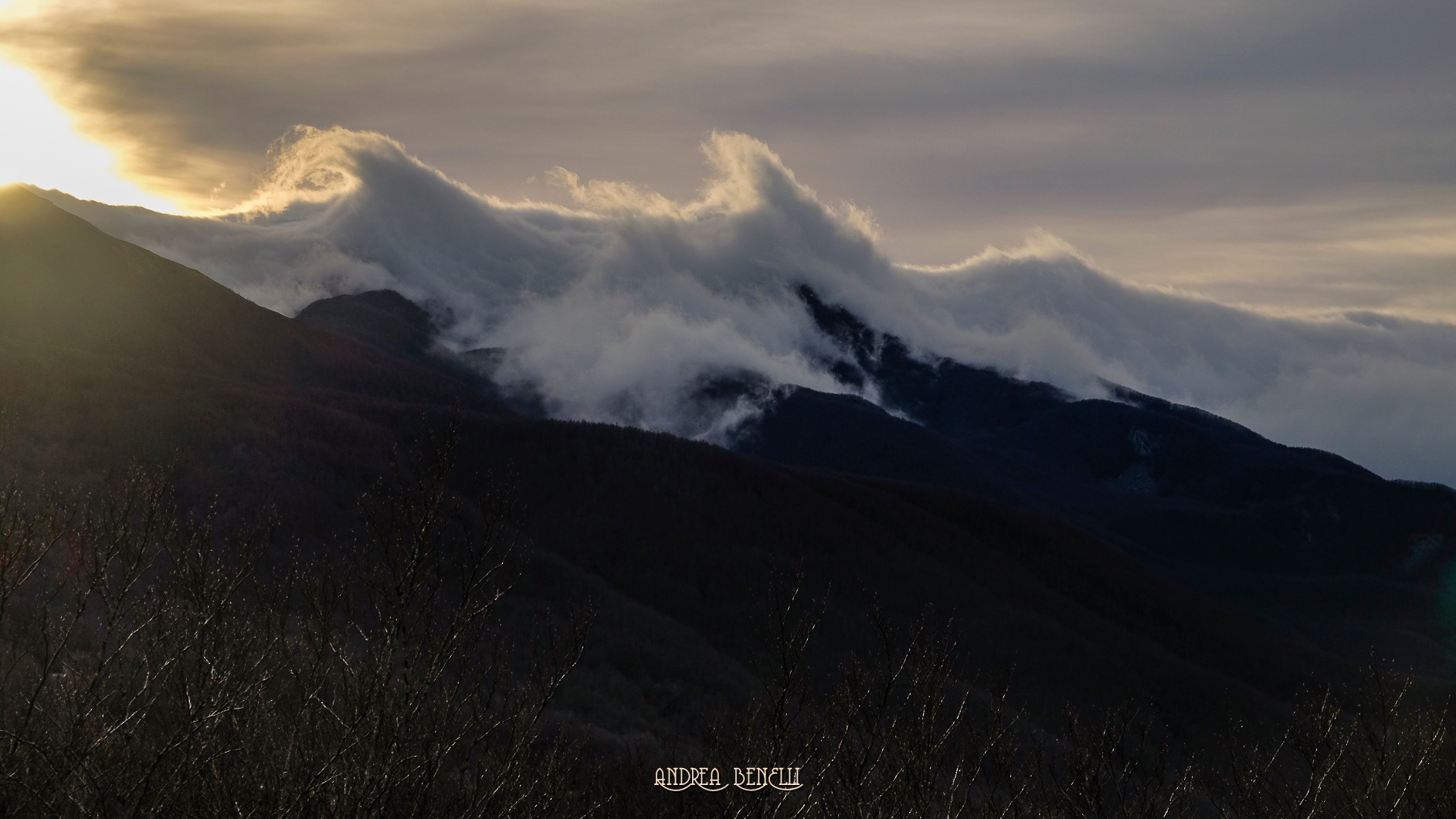 Oggi vi offriamo un altro pittoresco scorcio di quell'evento, questa volta siamo in prima linea sul Casarola e questo scatto di Andrea Benelli ci mostra in primo piano lo scontro tra le due correnti d'aria che si contrappongono.