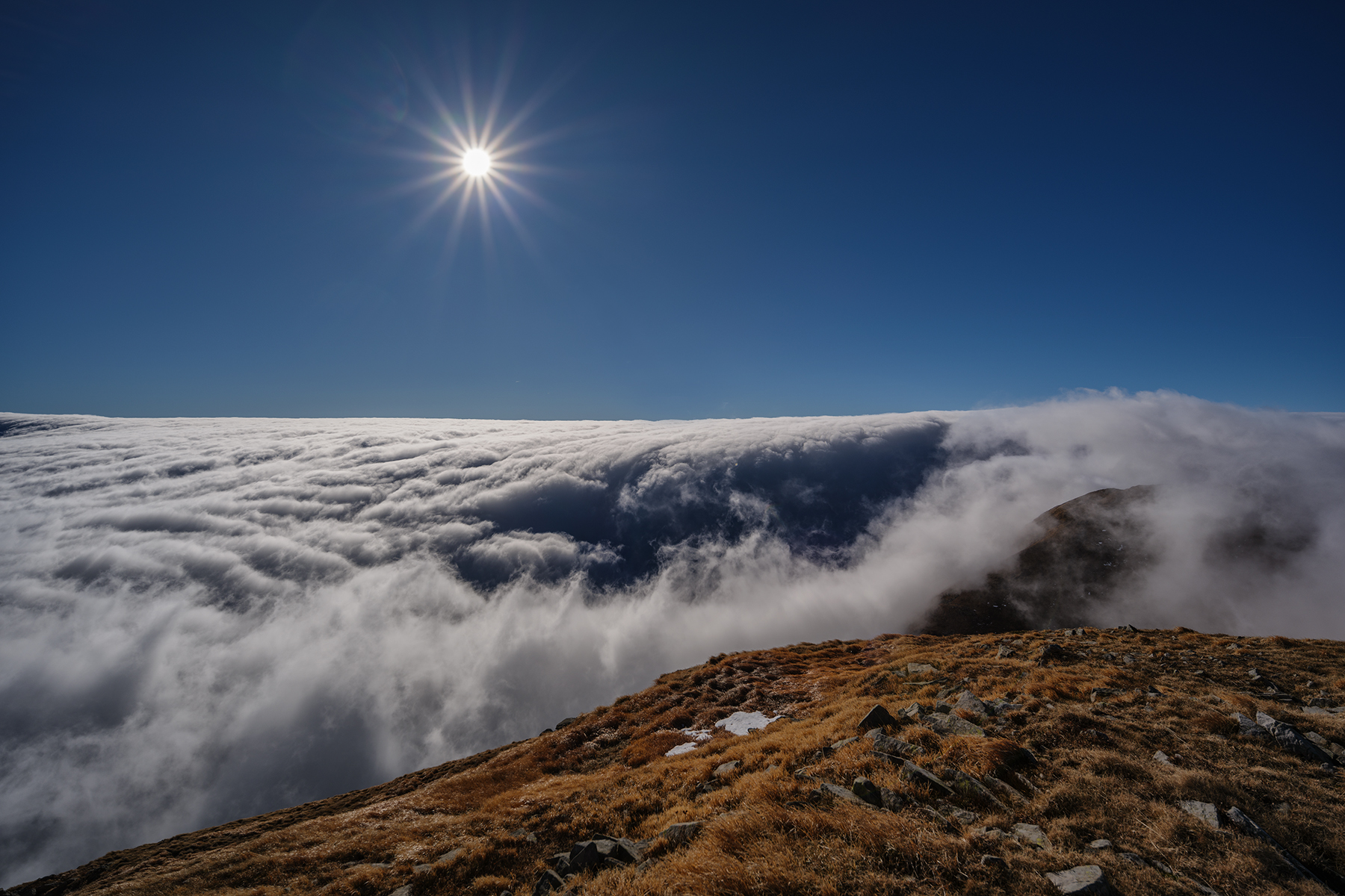 Come il troppo pieno di una vasca da bagno il passo del Cerreto rappresenta un varco allettante per questo mare di nubi fredde e dense che non vedono l'ora di precipitare a valle.