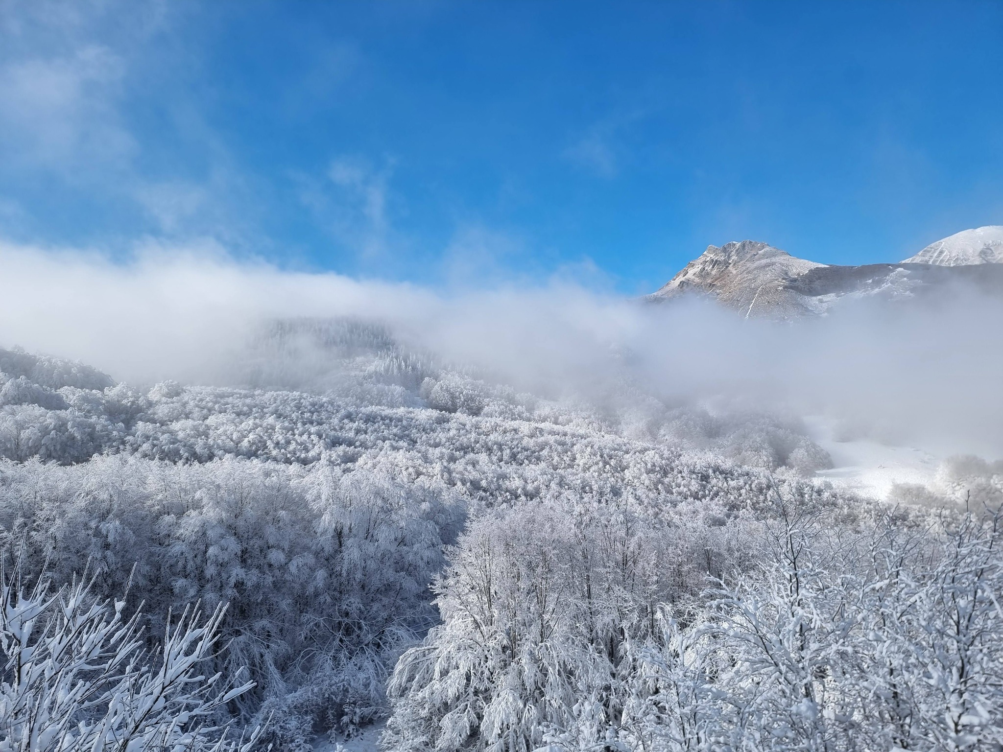 Siamo nella zona di Cerreto Laghi, ricca di faggi e di paesaggi incantevoli, specie quando vengono pennellati di bianco.
