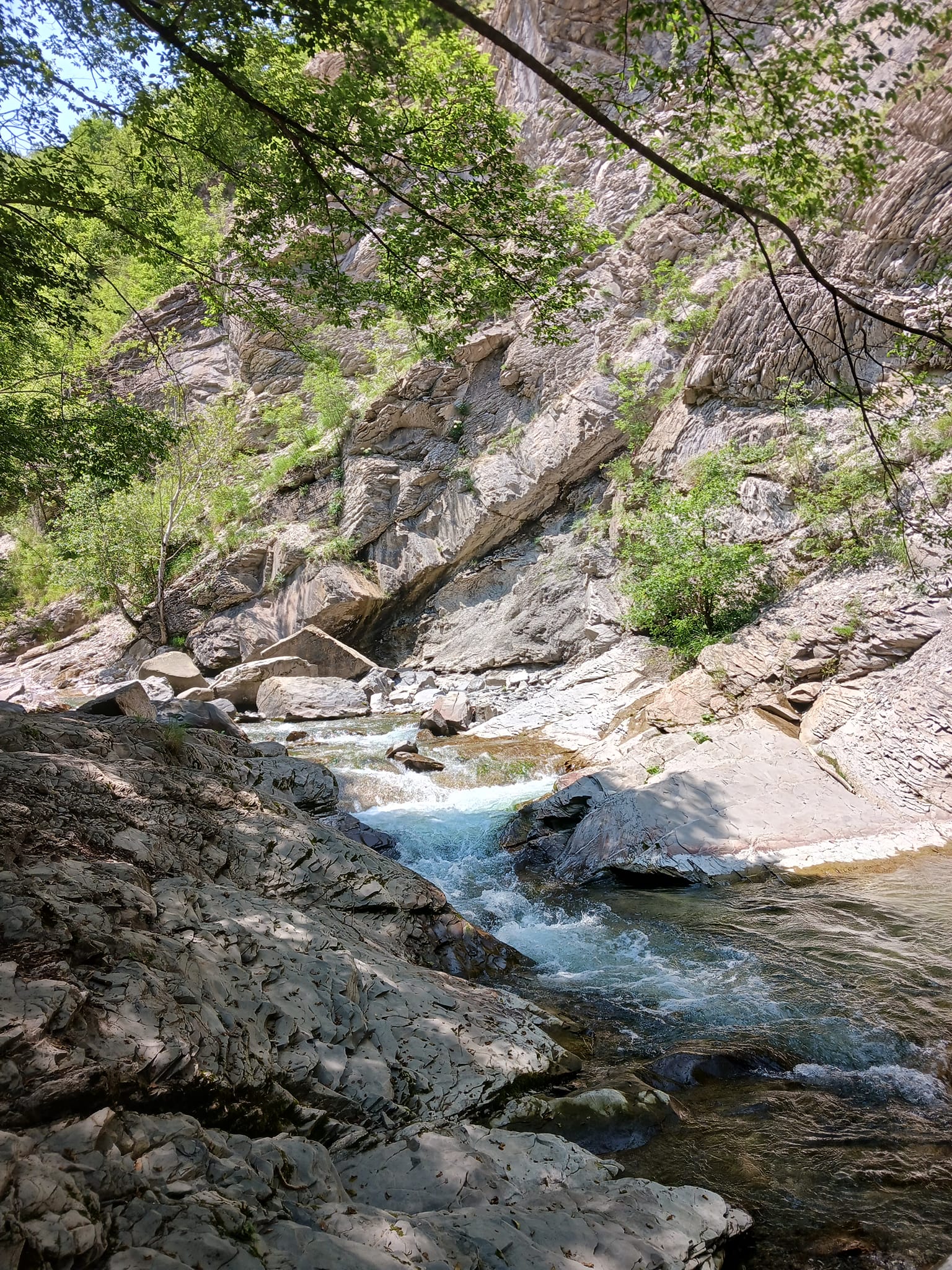 Pertanto, una goccia d'acqua alla volta, il torrente Secchiello ha eroso questi strati disposti in modo orizzontale, come i piani di una torta, creando dei gradini e dei balzi naturali che lasciano a bocca aperta gli escursionisti. Qui la valle si restringe e testimonia proprio la fatica che l'acqua compie nell'incidere la roccia e proseguire così il suo viaggio verso il mare. Un lento e progressivo lavoro di "cesello" che intaglia la valle con la caratteristica forma a "V".