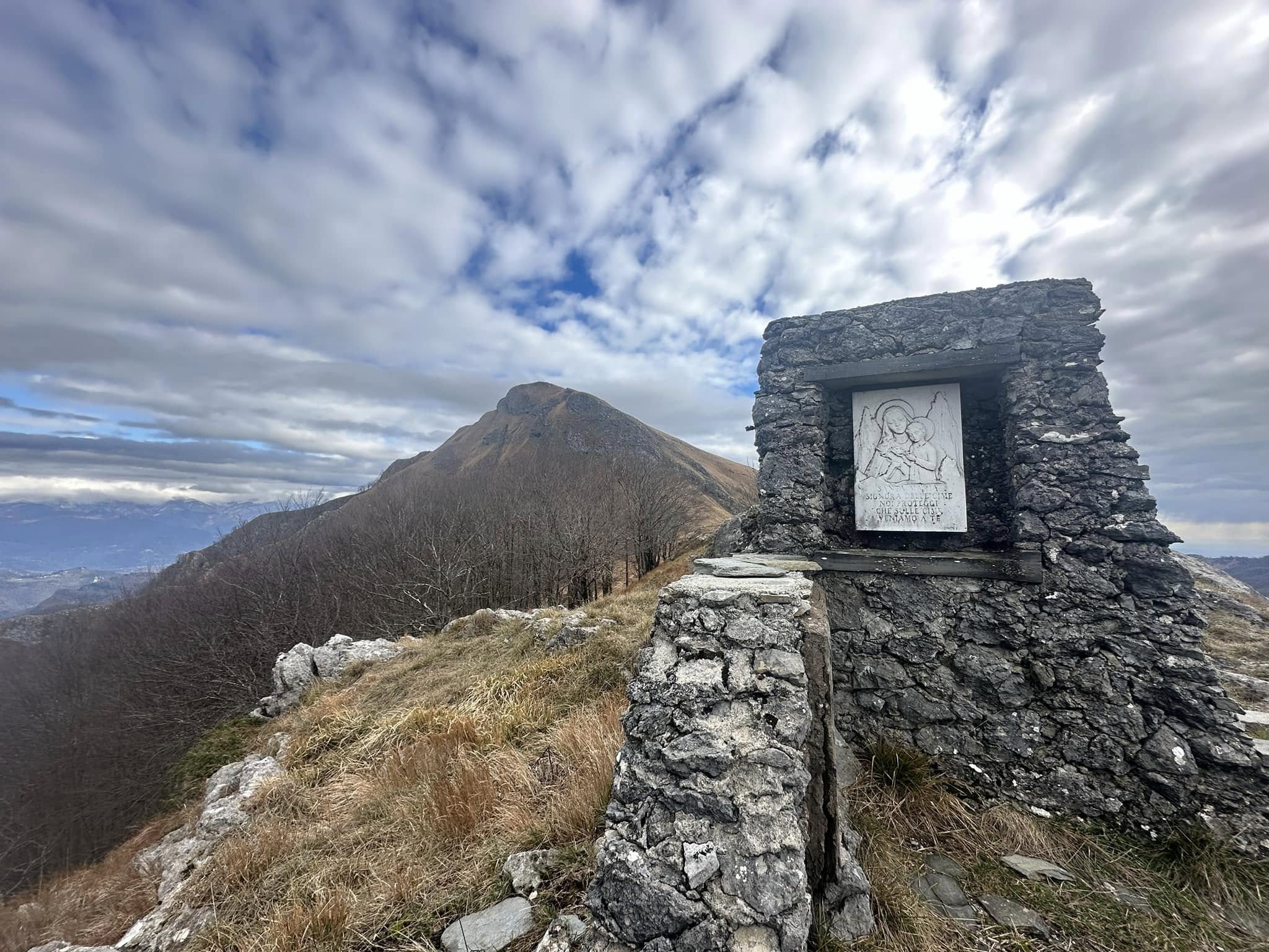 La Stele della Madonna della Montagna si trova circa 4 km di sentiero più a nord, si tratta di una piccola edicola votiva situata in una posizione panoramica spettacolare. Il panorama da qui spazia sulle Apuane Meridionali, il Monte Matanna, la costa e, nelle giornate limpide, persino sulle isole dell’arcipelago toscano.