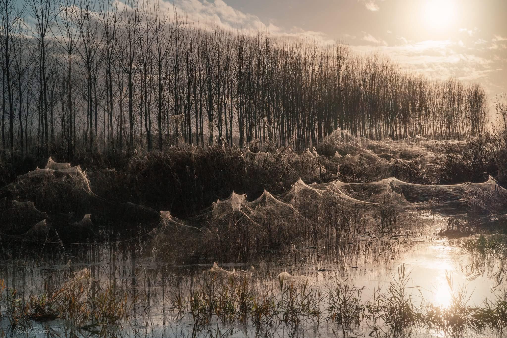 Il fenomeno catturato nello scatto è noto come ballooning ed è una strategia di sopravvivenza e dispersione utilizzata da milioni di piccoli ragni.