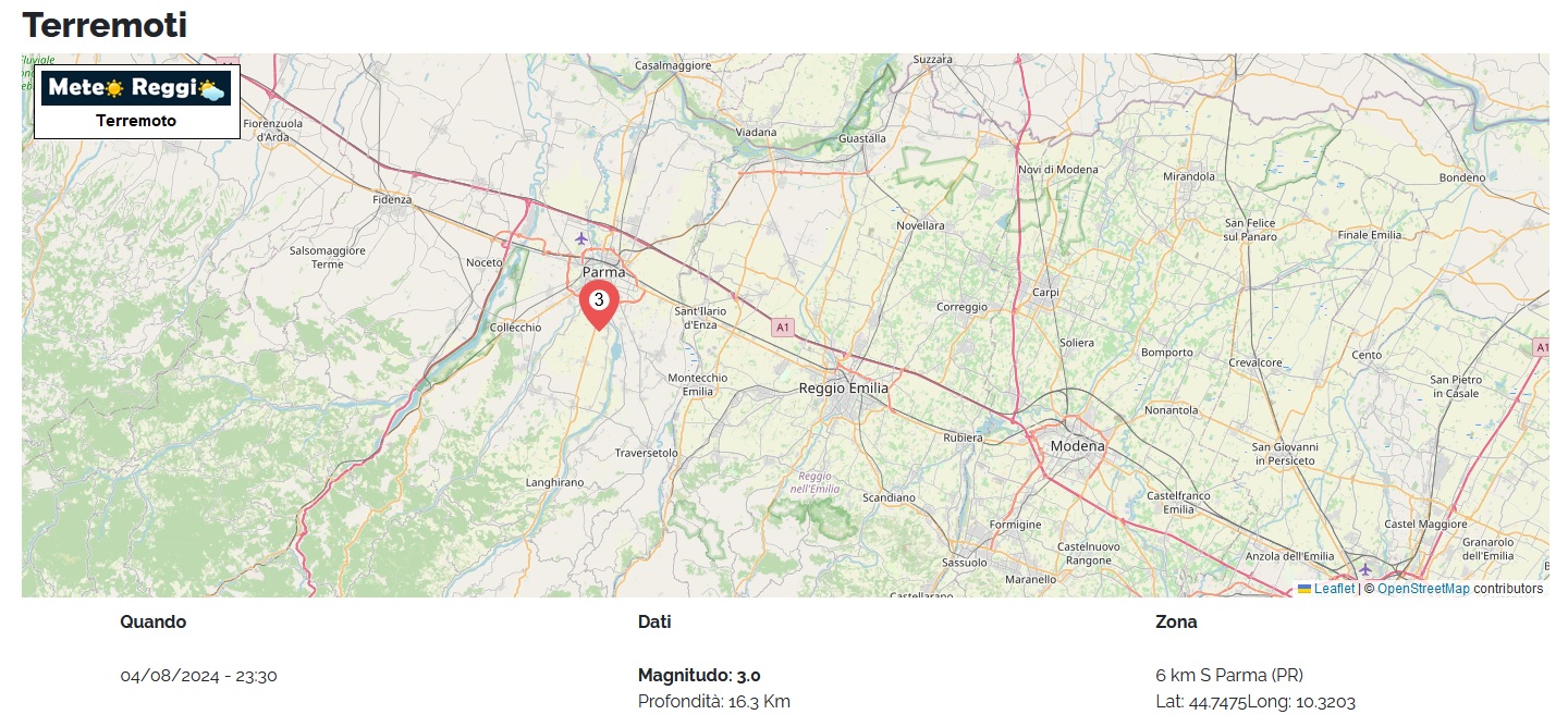 Poco dopo la mezza ha tremato leggermente il terreno sotto la periferia sud di Parma. Una piccola scossa avvenuta ad profondità che l'ha resa percettibile per gli abitanti della zona. L'irradiamento dell'energia ha reso percettibile l'evento anche sulla sponda destra dell'Enza da cui giungono alcune segnalazioni.