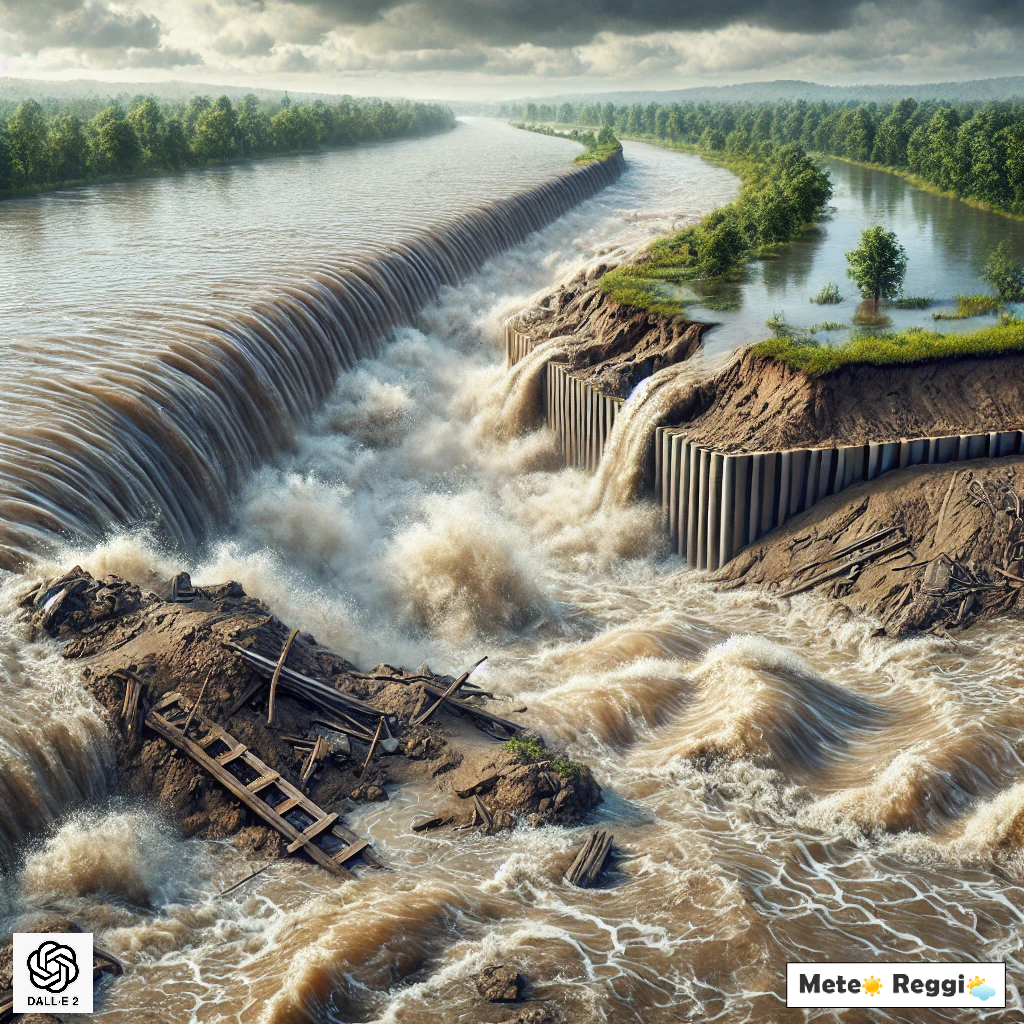 - Il cedimento localizzato di una parte dell'argine può innescare un effetto domino. Quando l'acqua trova un varco, la pressione aumenta e l'erosione si accelera nelle sezioni adiacenti, portando a un crollo su scala maggiore. L’argine può collassare lungo un tratto più lungo, aggravando l’alluvione.