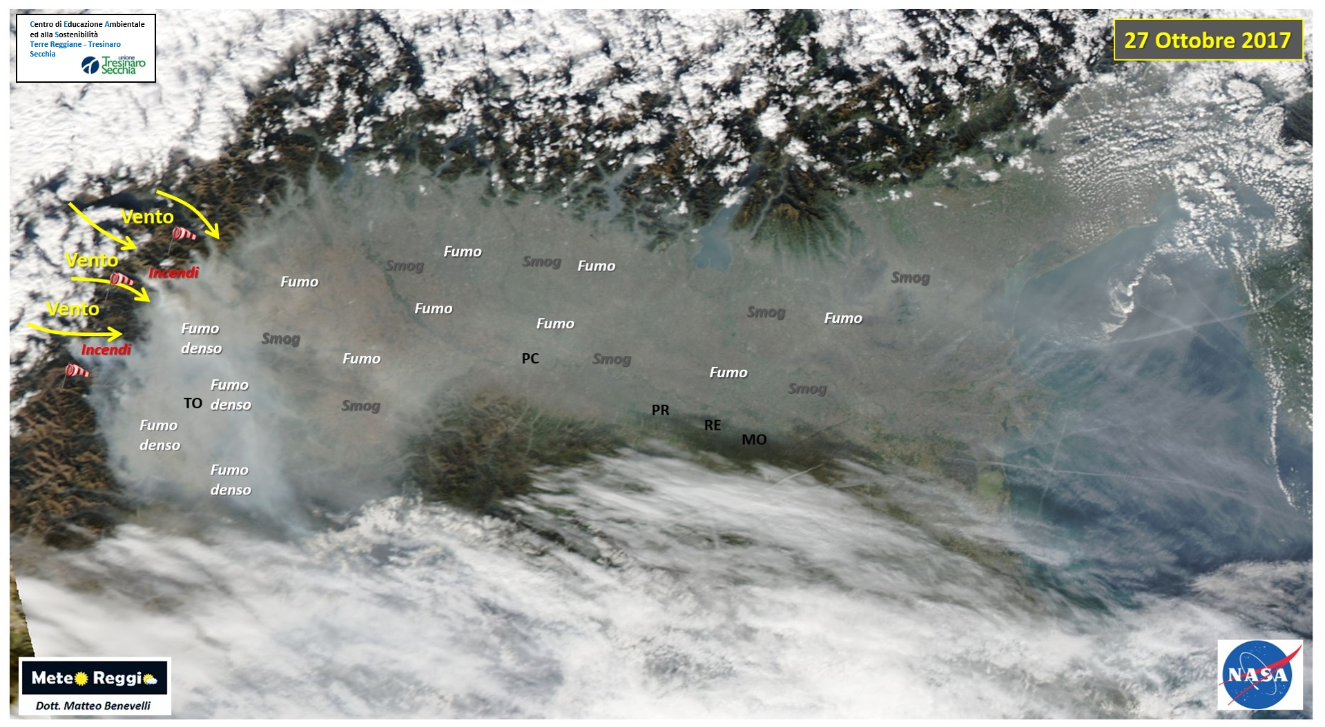 Ogni anno, soprattutto con l'arrivo del freddo, sentiamo parlare di questa piaga che affligge soprattutto la nostra Pianura. Purtroppo viviamo in uno degli hot-spot modiali di questa criticità a causa della geomorfologia del nostro territorio che vede la ventilazione bloccata dalle alte catene montuose che ci circondano.
