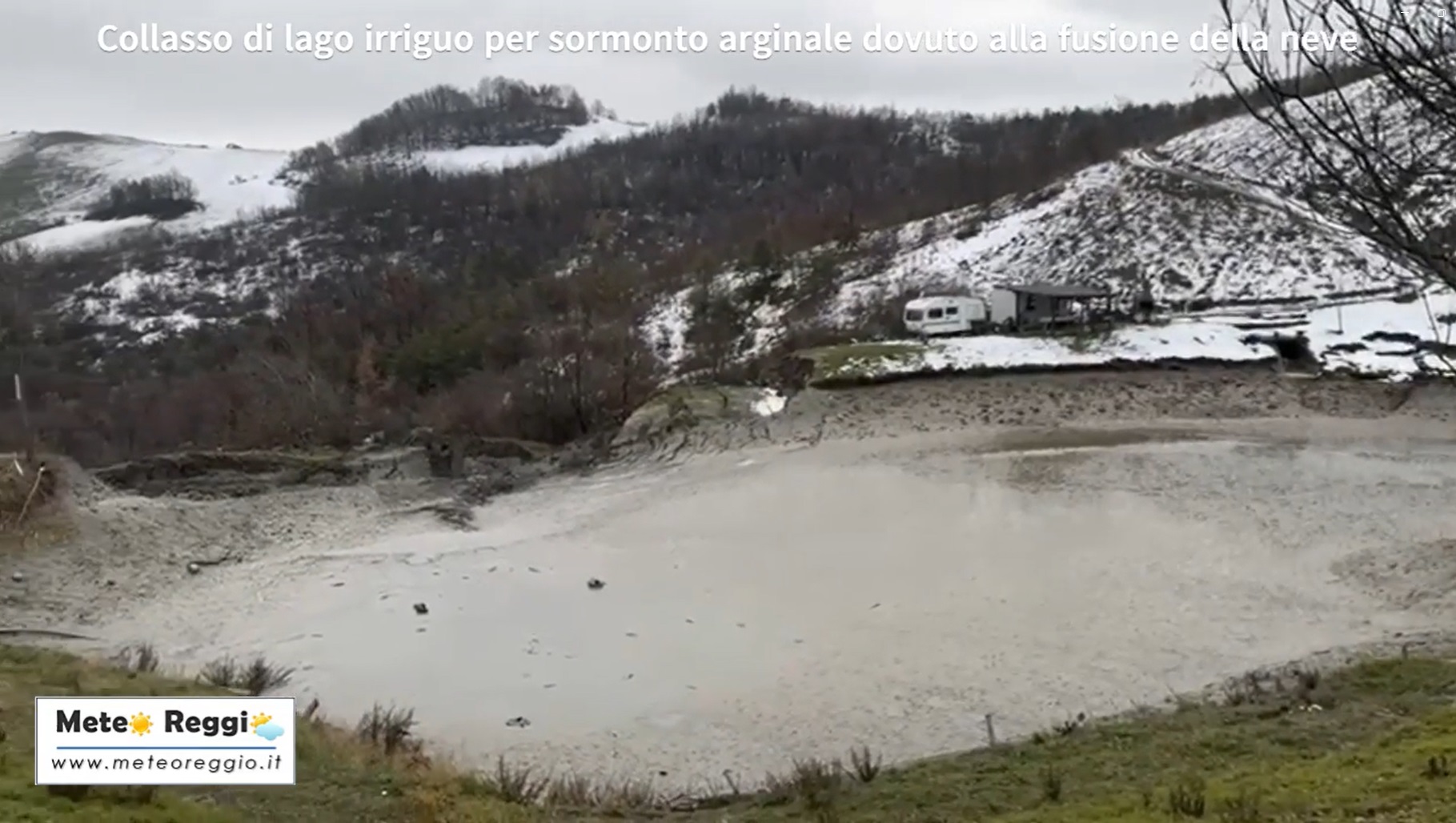 Qui le piogge e soprattutto la fusione della neve caduta ha riempito il piccolo invaso oltre il suo limite. L'acqua uscendo dalle sponde nel punto più basso ha iniziato a scavare un po' alla volta la morbida argilla fino a creare una voragine che ha svuotato completamente l'invaso.