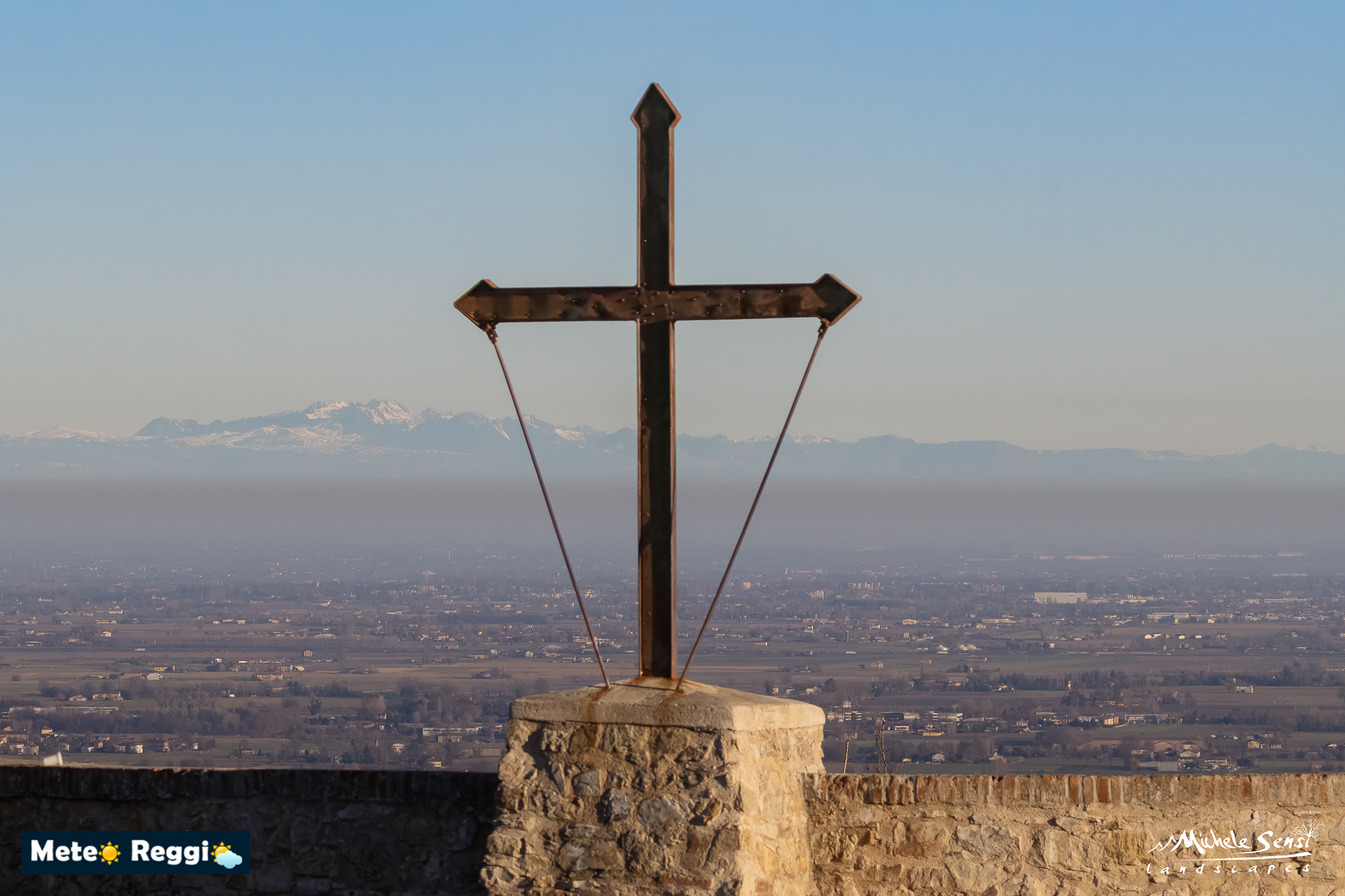 Dalle colline reggiane, come nel punto da cui è stata scattata la foto, si ha un’angolazione favorevole che permette di distinguere chiaramente la separazione tra i due strati. Inoltre, la luce solare radente al mattino o al tramonto evidenzia ulteriormente questa fascia grigia.