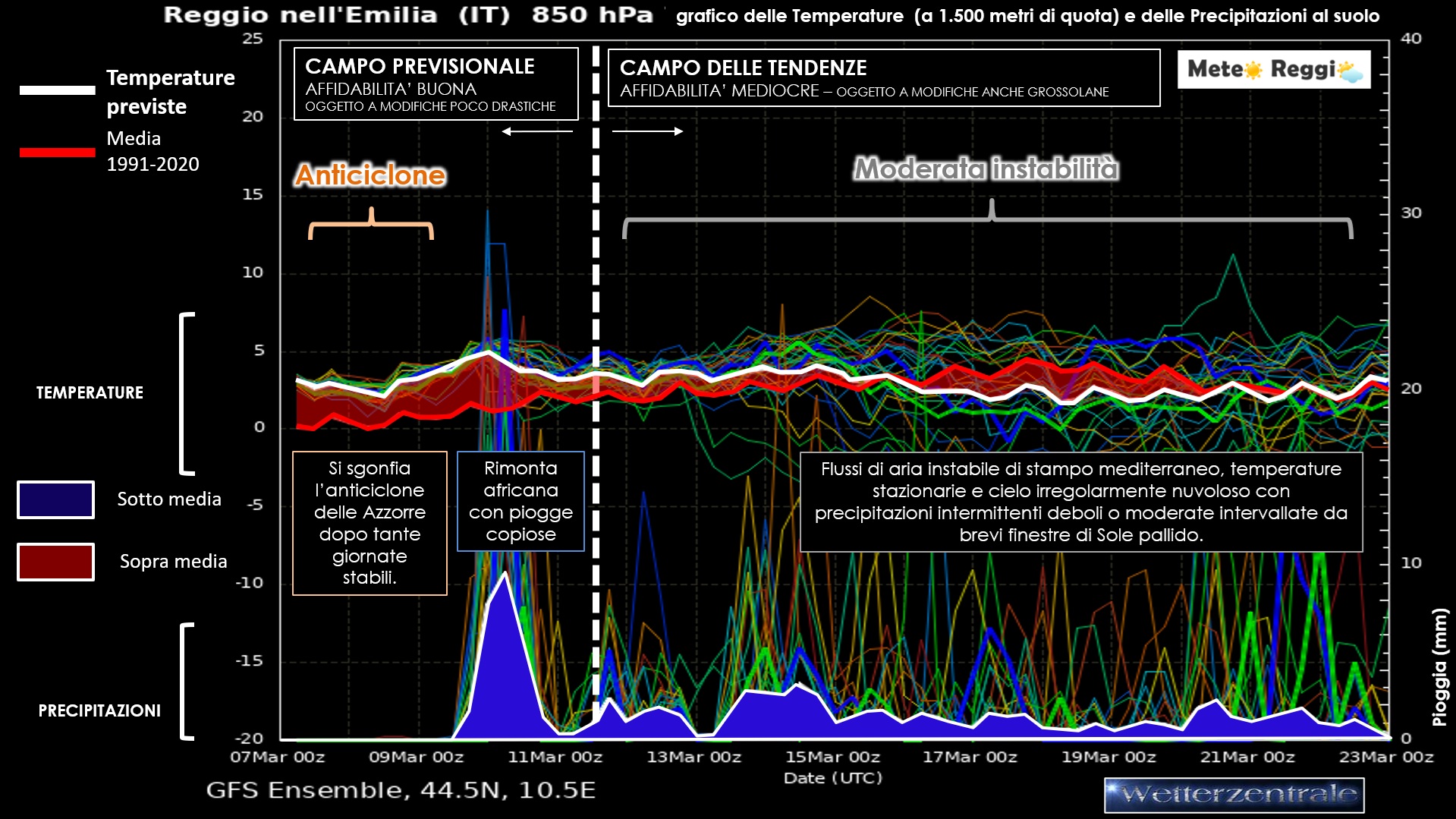 Questa corrente d'aria passerà su un mare Mediterraneo ancora troppo caldo per il periodo facendo un bel carico di umidità e non è remota l'ipotesi che in carico si prenda anche un po' di polvere dal deserto del Sahara. Dalla tarda mattinata le nuvole si accalcheranno sul Crinale dal versante toscano, per poi sconfinare nel primo pomeriggio nel reggiano. Piogge sporche di polvere giallastra e vento di Libeccio in alta quota, condizioni assolutamente proibitive per chi pensa di fare un'escursione in montagna. Le piogge, poi, si sposteranno sempre più a nord fino a raggiungere la Via Emilia a ridosso del tramonto.