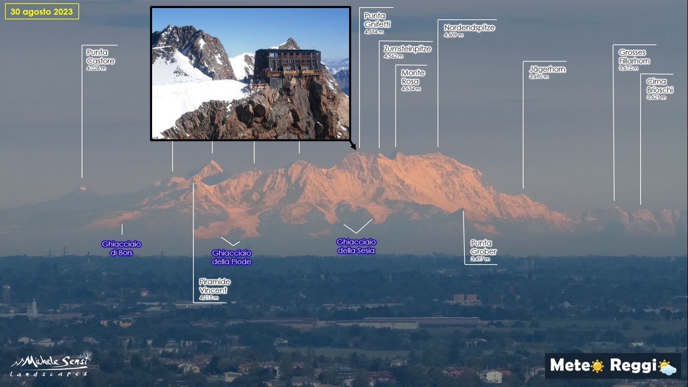 Solo pochi giorni fa vi abbiamo parlato del Monte Rosa e di come sia ben visibile dal nostro territorio quando l'aria della Pianura Padana è particolarmente pulita e asciutta. Vi abbiamo mostrato anche i suoi ghiacciai nord-orientali che puntano verso la nostra direzione e di come siano belli e riconoscibili. Tuttavia sono le prime vittime del grande caldo e questo mese di settembre sgretola un'altro record negativo di questa terribile estate 2023, con ben ...
