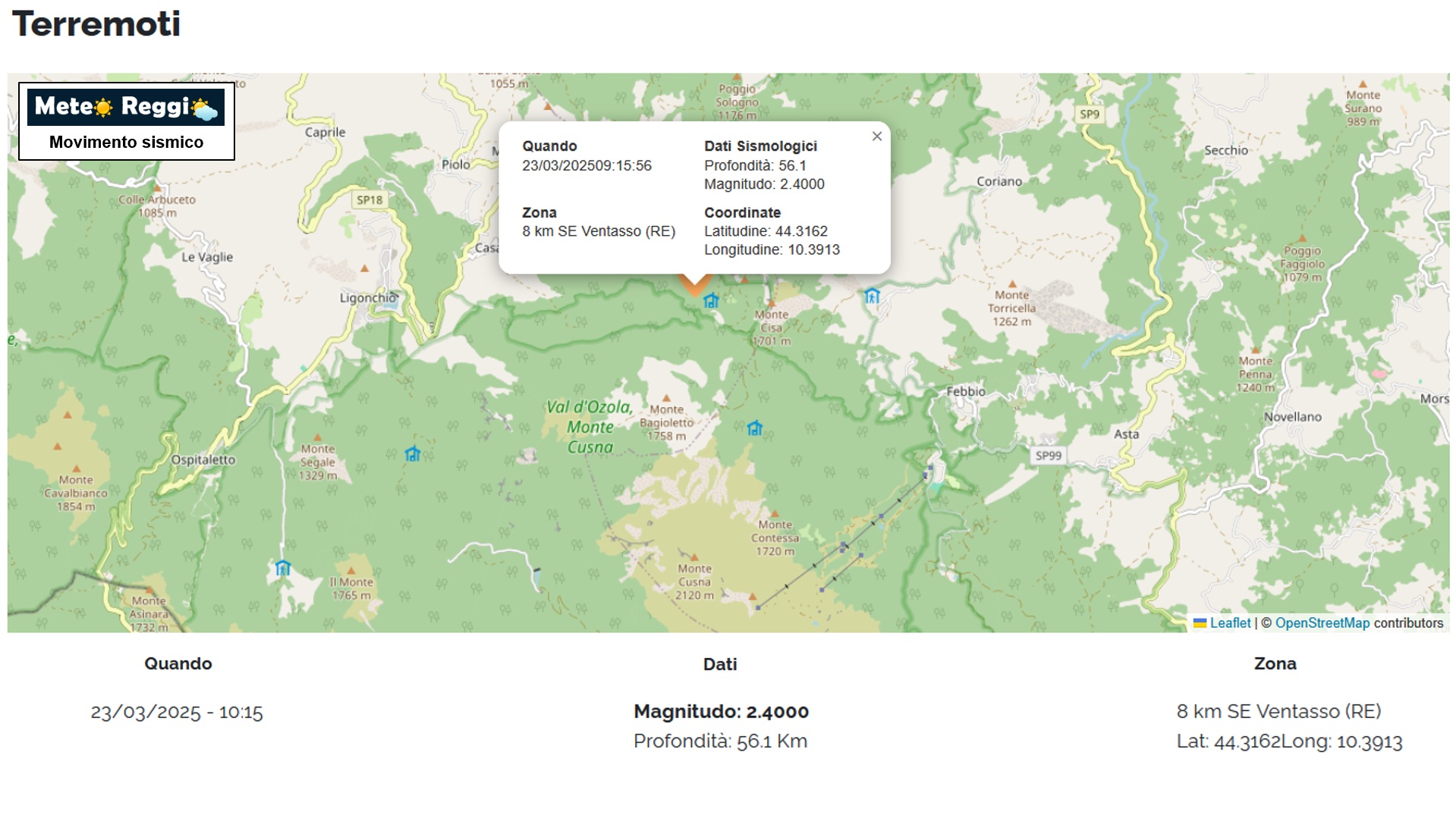 Nulla di minaccioso, ma nella mattinata di domenica 23 marzo alle 10:15 è stato registrato dai sismografi un debole terremoto di magnitudo 2.4 sotto il monte Cusna. Un terremoto molto profondo che ci ricollega a quanto detto nei giorni scorsi per i terremoti che avvengono in Pianura a nord di Reggio Emilia.