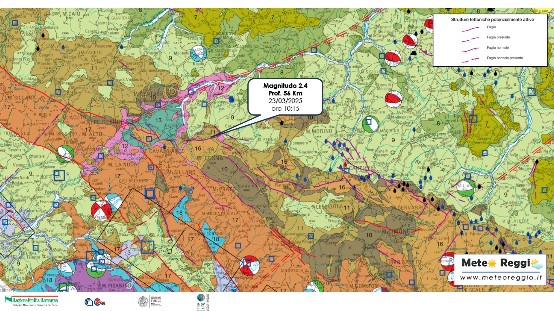La scossa registrata dai sismografi domenica mattina è avvenuta alla profondità di ben 56 chilometri, una distanza dall'epicentro importante se paragonata a quelli molto più superficiali che di solito si manifestano in Pianura. I terremoti che avvengono nell'Appennino Reggiano sono "generalmente" più profondi rispetto a quelli della Pianura Padana. Questo è dovuto alla struttura geologica della Regione: