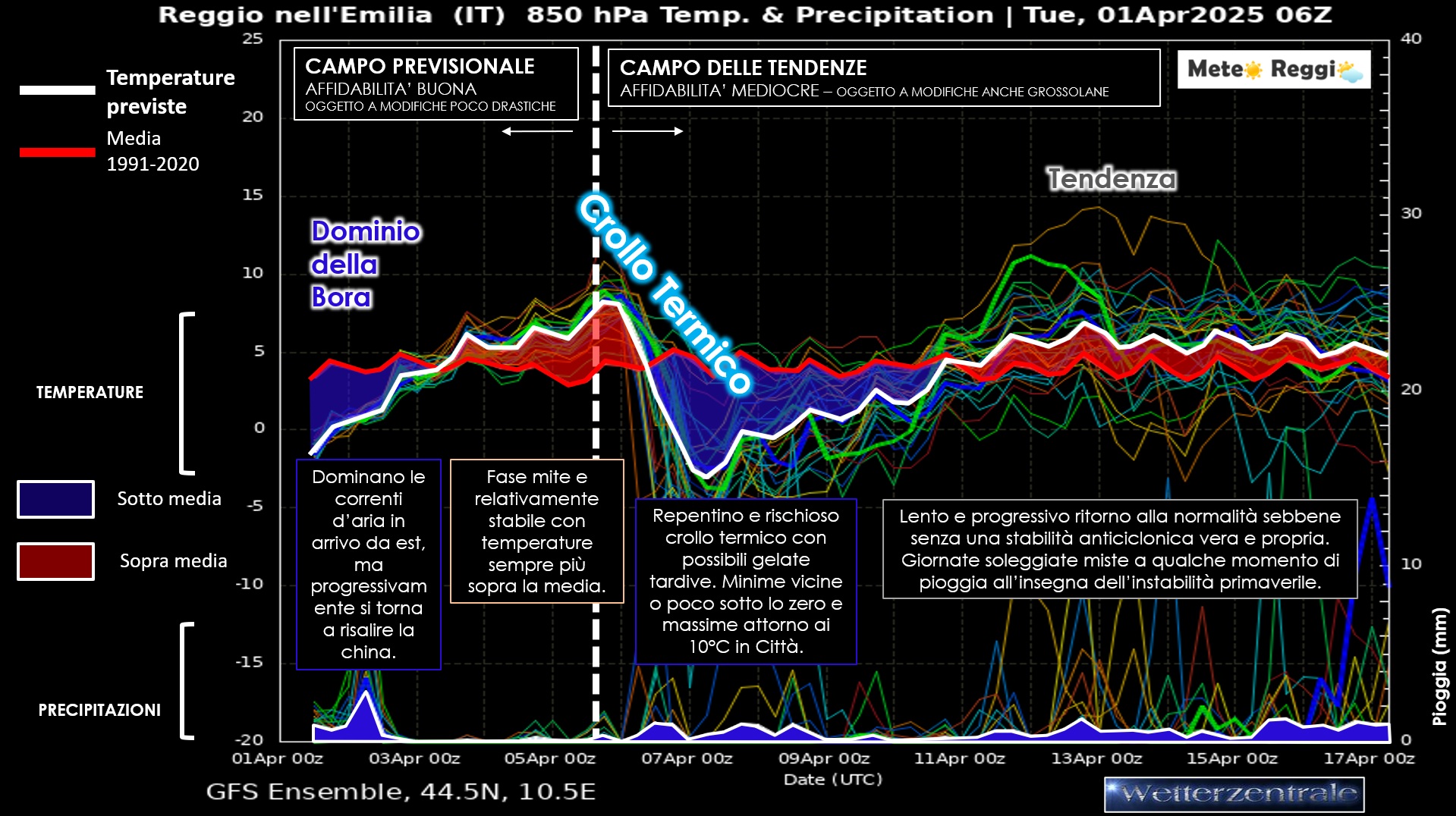 Il mese di aprile si apre con un mini colpo di reni meteorologico: dopo i tepori quasi estivi degli ultimi giorni, il freddo torna a farsi sentire sulla provincia reggiana. La causa principale è l'apertura della "porta della Bora" a est, avvenuta con i temporali di lunedì 31 marzo, che spinge correnti più fredde e nuvolosità in direzione del ...
