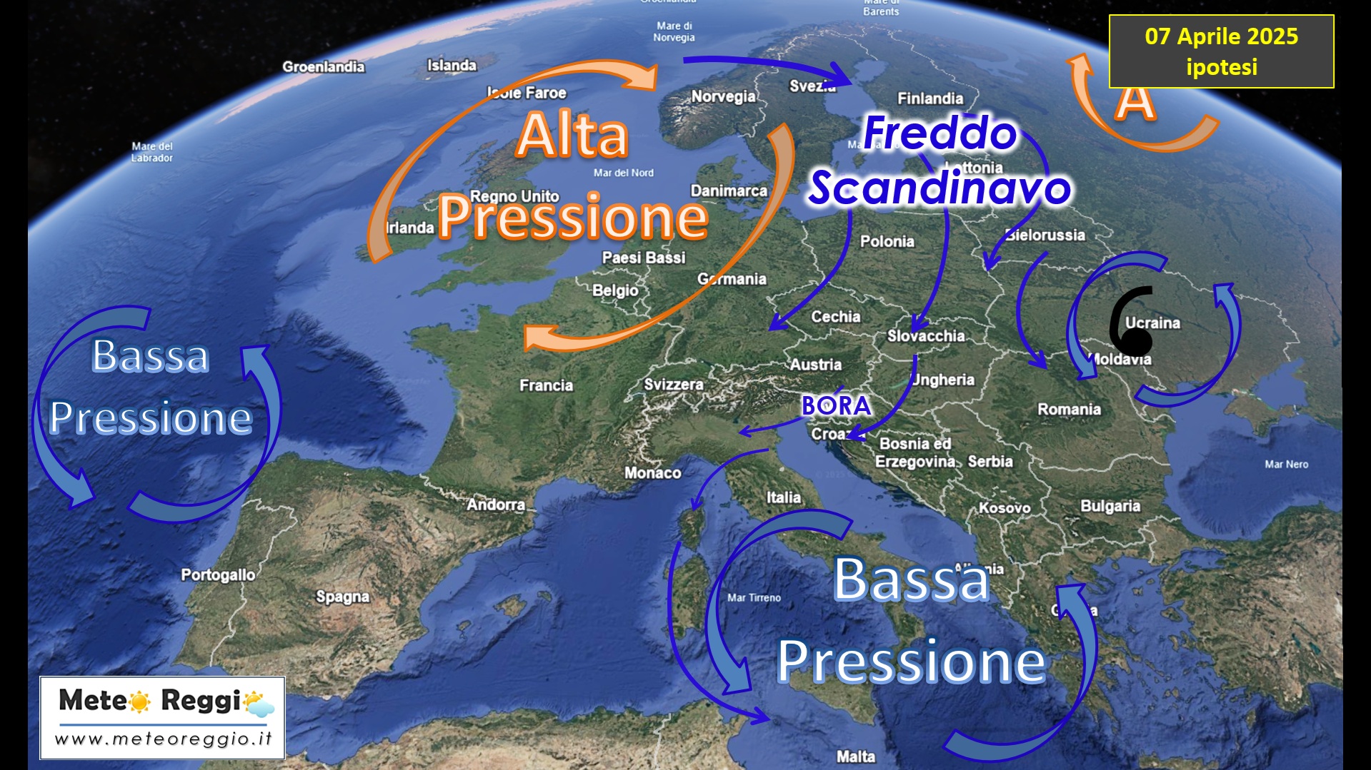 Meteorologicamente parlando si sta rinforzando sempre di più un'alta pressione nel mare del Nord. Questo gigante ruotando in senso orario raccoglie il freddo presente nella Scandinavia e lo scaglia verso il Mediterraneo passando dalle Repubbliche Baltiche, Polonia, Repubblica Ceca, Austria e Slovenia. Qui si apre la porta della Bora che lancia il fresco verso di noi e favorisce la nascita di un vortice di bassa pressione nel sud dell'Italia. Il percorso che vi abbiamo descritto è un percorso prevalentemente di "terra ferma", quindi l'aria fredda non avrà modo di arricchirsi di umidità lungo il suo percorso. Sarà aria fresca ma secca che non comporterà l'arrivo di alcuna minaccia di pioggia intensa ... magari qualche nuvola, magari qualche pioggia debole il primo giorno d'irruzione, ma il Sole non mancherà.