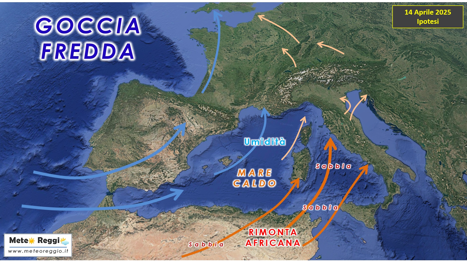 Il peggioramento non sarà un evento isolato. A partire da lunedì 14 aprile, l’interazione tra la goccia fredda atlantica e l’aria calda africana manterrà condizioni instabili su tutta la regione, compresa la provincia di Reggio Emilia. Piogge intermittenti non troppo intense accompagneranno le giornate almeno fino a mercoledì 16, con pause asciutte alternate a momenti di instabilità più marcata. Il grosso delle precipitazioni, però, dovrebbe interessare con più insistenza l'alto Appennino con accumuli non esagerati ma in grado di poter creare qualche scenario di rischio idrogeologico.