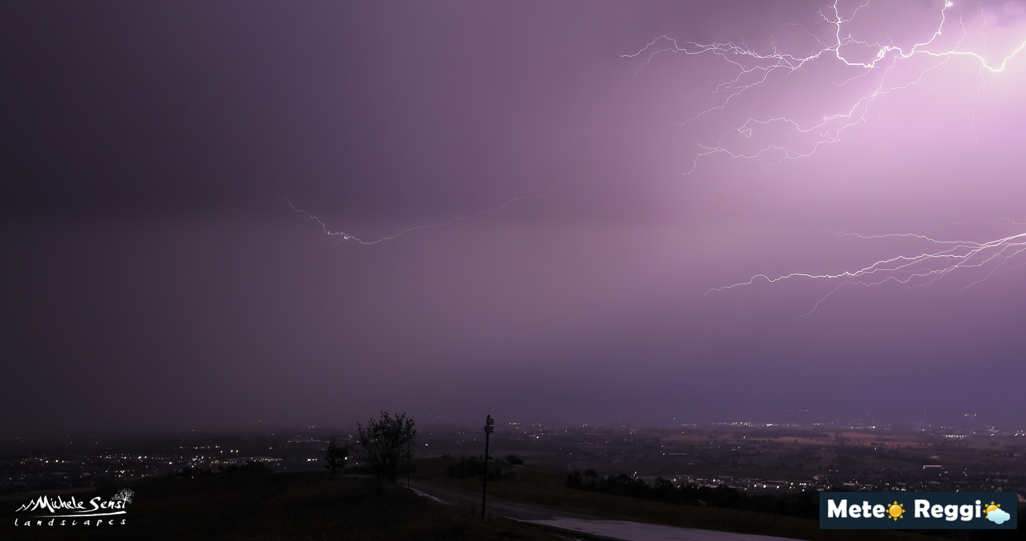 Il primo è un temporale notturno con intensa attività elettrica, con fulmini su un cielo violaceo (tipico dell’elevata umidità e delle nubi compatte).