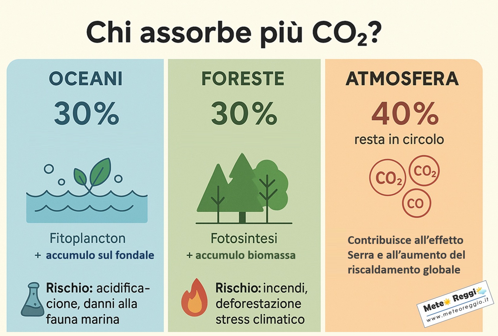 Pertanto gli oceani e foreste assorbono quantità simili di CO₂, ma gli oceani, nel lungo periodo, ne trattengono di più. Entrambi questi ambienti sono vitali per il nostro equilibrio climatico e proteggerli è essenziale: senza foreste e oceani in salute, non c’è futuro sostenibile.