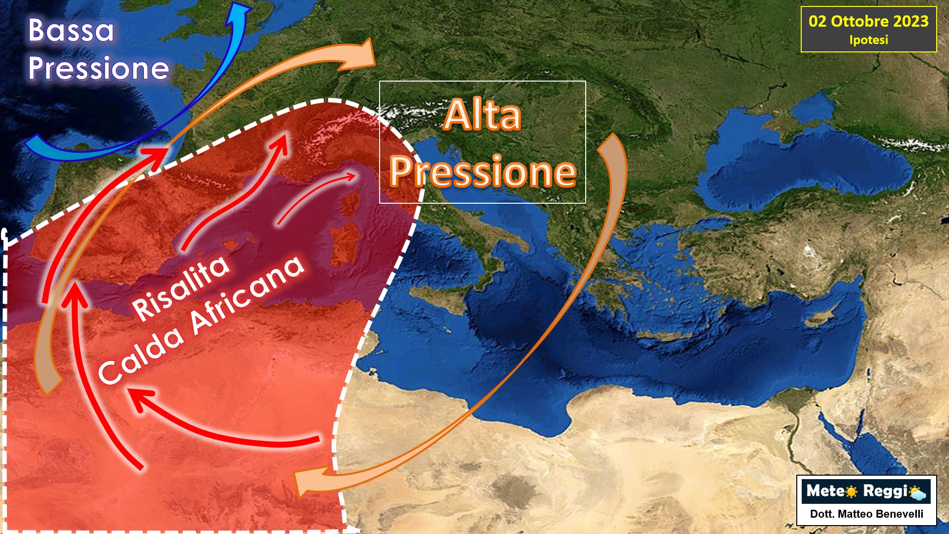 Fino ad almeno il 4 di Ottobre saremo in balìa di flussi d'aria calda di matrice africana che saliranno dalle coste dell'Algeria e Marocco verso Spagna e Francia. Purtroppo il nord-Italia non sarà più di tanto ai margini di questo attacco. Per un po' ci è andata bene con i flussi d'aria freschi in arrivo dall'est Europa grazie all'Anticiclone delle Azzorre, ma nel fine settimana e primi giorni della prossima settimana il flusso caldo farà sul serio anche da noi. Facilmente toccheremo la soglia dei 30°C in Pianura con qualche puntina poco sopra. Valori non eccezionali se fossimo in Agosto, ma terribili per Ottobre.