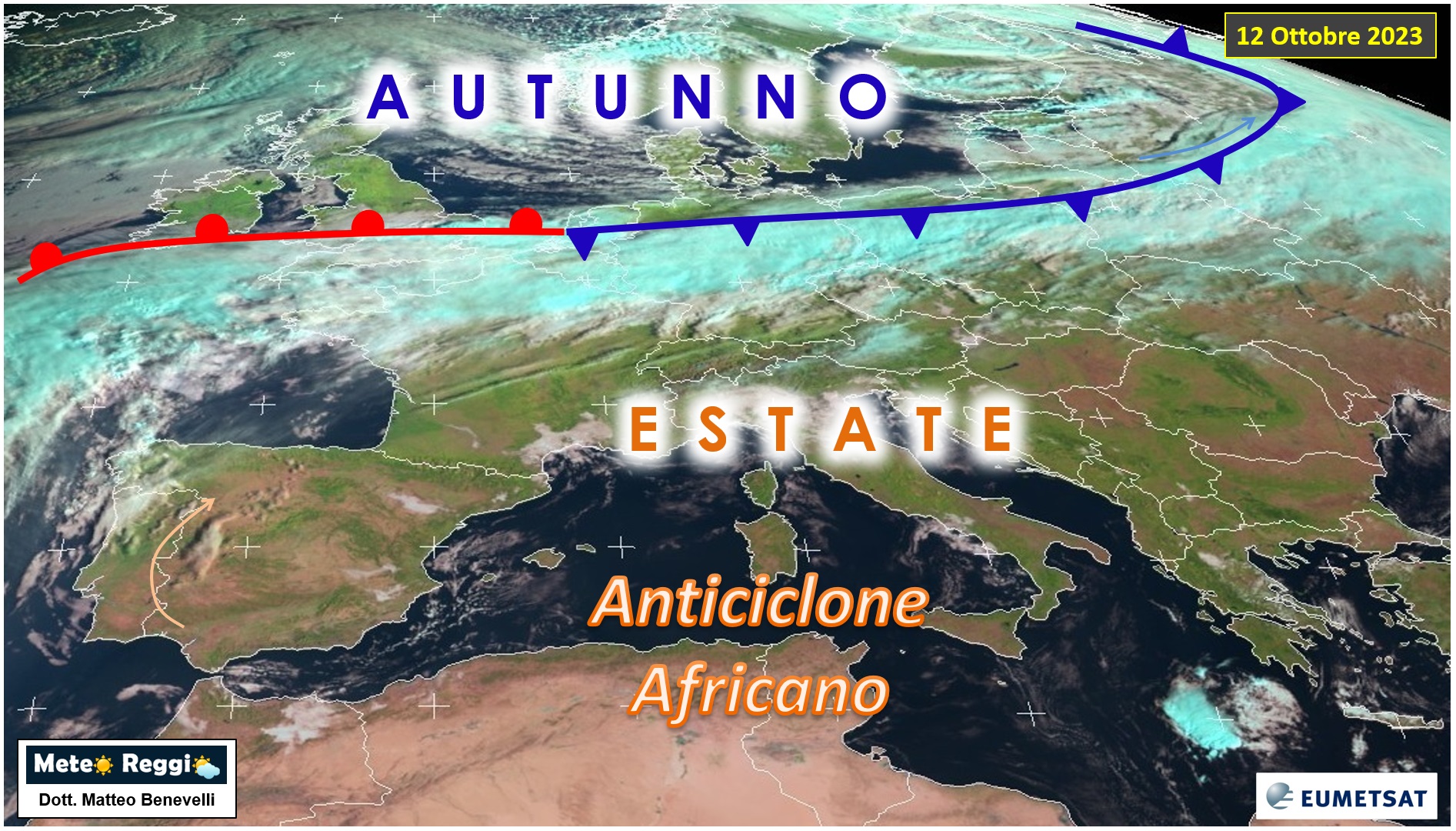 Ancora un po' di pazienza e finalmente l'autunno 2023 può iniziare. Il pesantissimo anticiclone africano che ha dominato sulla nostra Provincia sta per abbandonarci dopo delle punte da record che hanno fatto toccare i 34°C ai termometri della nostra Pianura. Un valore che resterà negli annali e che per il mese di Ottobre è a dir poco eccezionale. Ora il gigante alto pressorio si sposterà gradualmente verso le coste del nord Africa tra Libia ed Egitto permettendo alle correnti instabili atlantiche di fare il loro ingresso dalla Francia nel Mediterraneo e a riportare la tanto attesa pioggia sulla nostra Provincia.