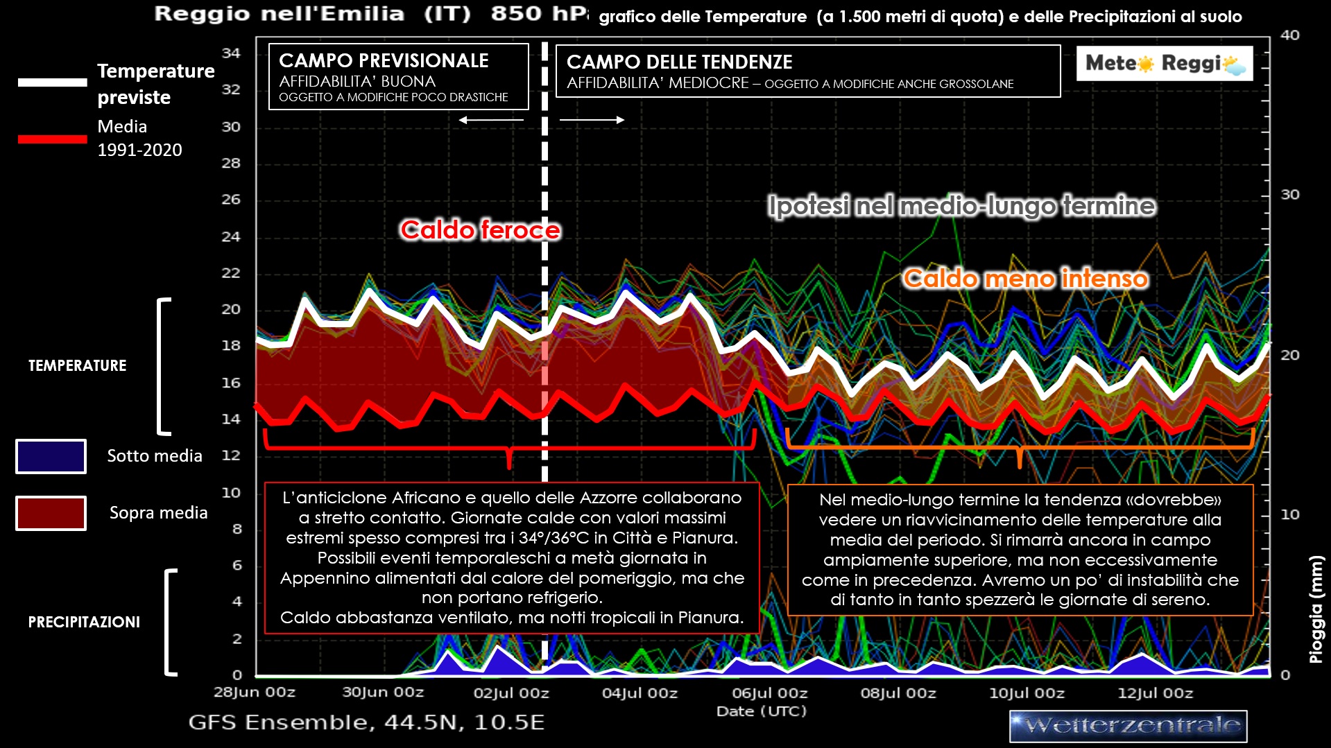 Analisi del modello GFS a Spaghetti per Reggio Emilia in questo rovente avvio d'estate