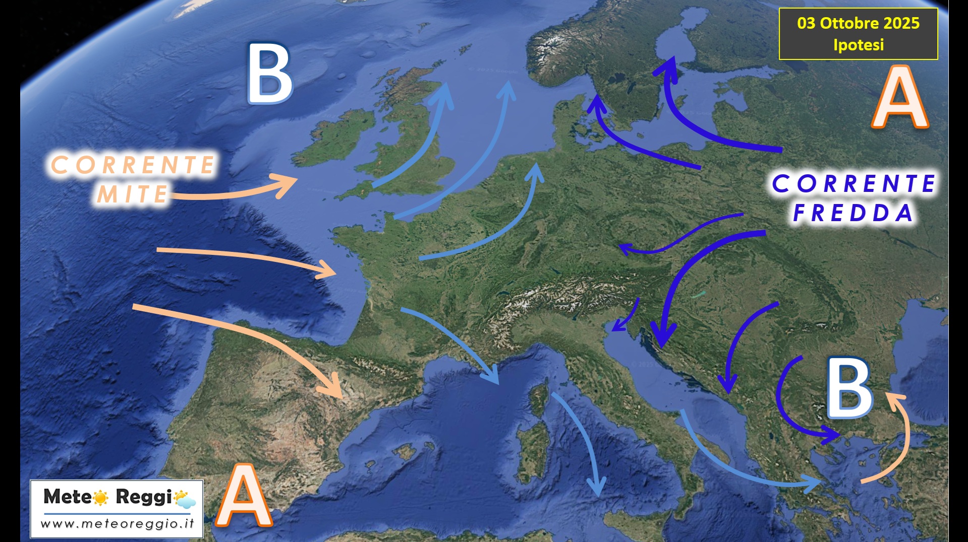 Il vero punto di svolta è atteso per l'1 Ottobre. Le previsioni indicano la possibile apertura della "porta della Bora", un canale attraverso cui si incanalerà una corrente d'aria fredda proveniente dall'Europa (come suggerito anche dalla mappa delle correnti, dove la "CORRENTE FREDDA" in viola si sposta verso l'Italia).