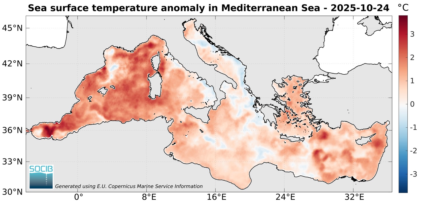 Assolutamente sì, le condizioni termiche elevate del Mar Mediterraneo come quelle che ci mostra la grafica del 24 ottobre 2025 hanno alimentato la forza dei temporali di giovedì 23 ottobre e sono un fattore chiave che può alimentare altri eventi temporaleschi nel caso in cui arrivi una nuova corrente fresca dall'Atlantico ...
