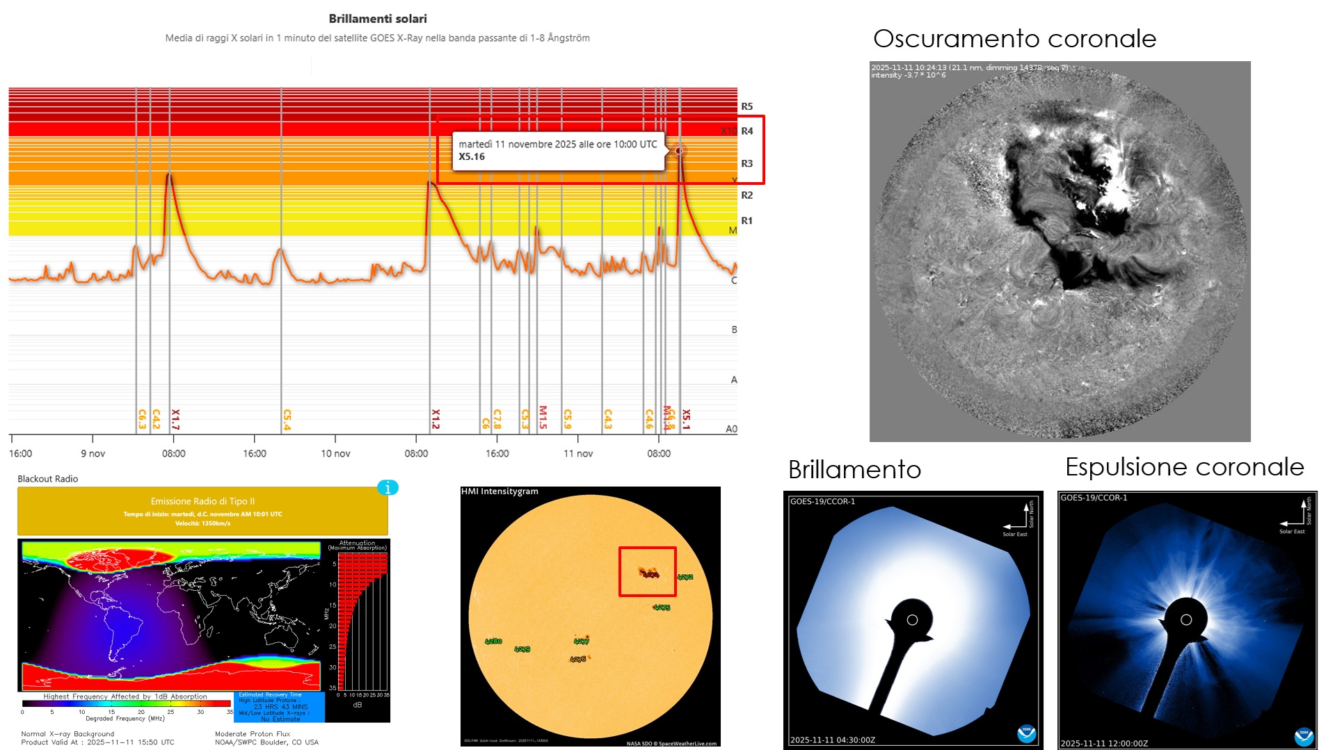 Questa mattina, 11 novembre 2025, è stata segnata da uno dei più potenti eventi solari registrati nel ciclo attuale. I dati e le immagini rilasciate dallo Space Weather Prediction Center (SWPC) confermano l'eccezionalità dell'evento, con effetti già percepiti sulla Terra e un massiccio impatto in arrivo.