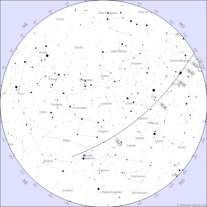 18:26 Passa poco sotto Vega, una delle stelle più luminose del cielo
