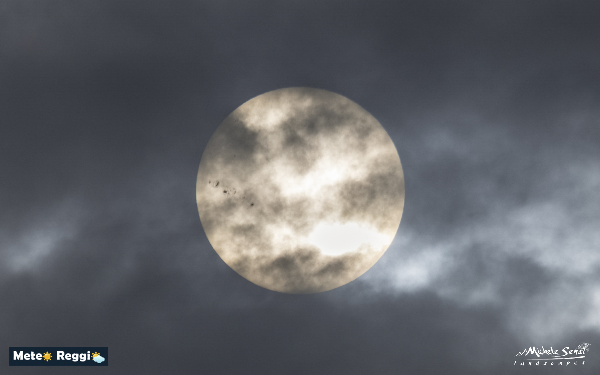 Grazie a questo brevissimo spiraglio e all’uso dei necessari filtri di protezione, è stato possibile immortalare un’immagine sorprendente in cui le macchie solari appaiono nitide sul disco solare, nonostante la presenza del velo nuvoloso. Pensate che l’area complessiva coperta da queste due regioni supera i 6.000 milioni di chilometri quadrati, una superficie tale da renderle visibili persino con strumenti non professionali, pur sempre con le adeguate protezioni ottiche. La superficie della nostra Terra è di "appena" 510 milioni di chilometri quadrati.