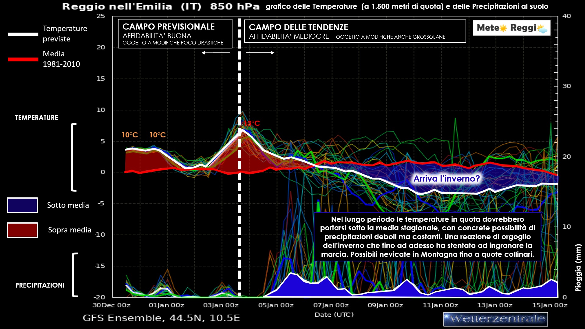 L'ultima parte del 2023 è stata decisamente poco entusiasmante e l'inverno è ancora latitante dalla nostra Provincia. Manca la neve in Appennino e l'acqua è sempre più scarsa anche sul resto del territorio. Un po' di pioggia sta per fare nuovamente ritorno, ma l'anticiclone ancora imperversa nel Mediterraneo impedendo alle perturbazioni più serie di raggiungerci. Lo abbiamo visto chiaramente con gli eventi di Stau che si sono formati dietro il nostro Crinale in questi giorni e ce ne siamo accorti dall'assenza delle piogge.