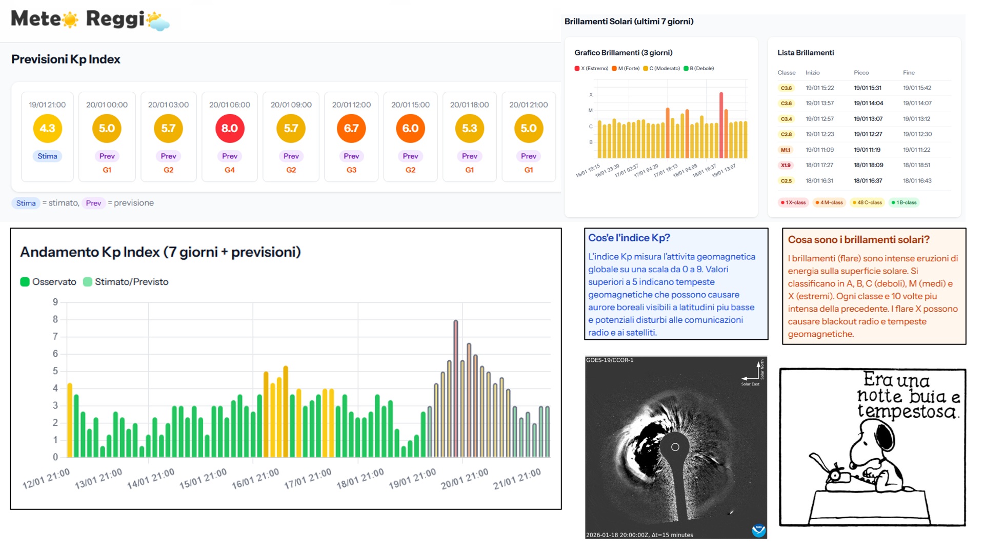 Come ricorda ironicamente la vignetta di Snoopy inclusa nei dati , potrebbe essere davvero una "notte buia e tempestosa", ma in questo caso la tempesta sarà fatta di luci e particelle ad alta quota, a migliaia di chilometri sopra le nostre teste e sopra le nuvole.