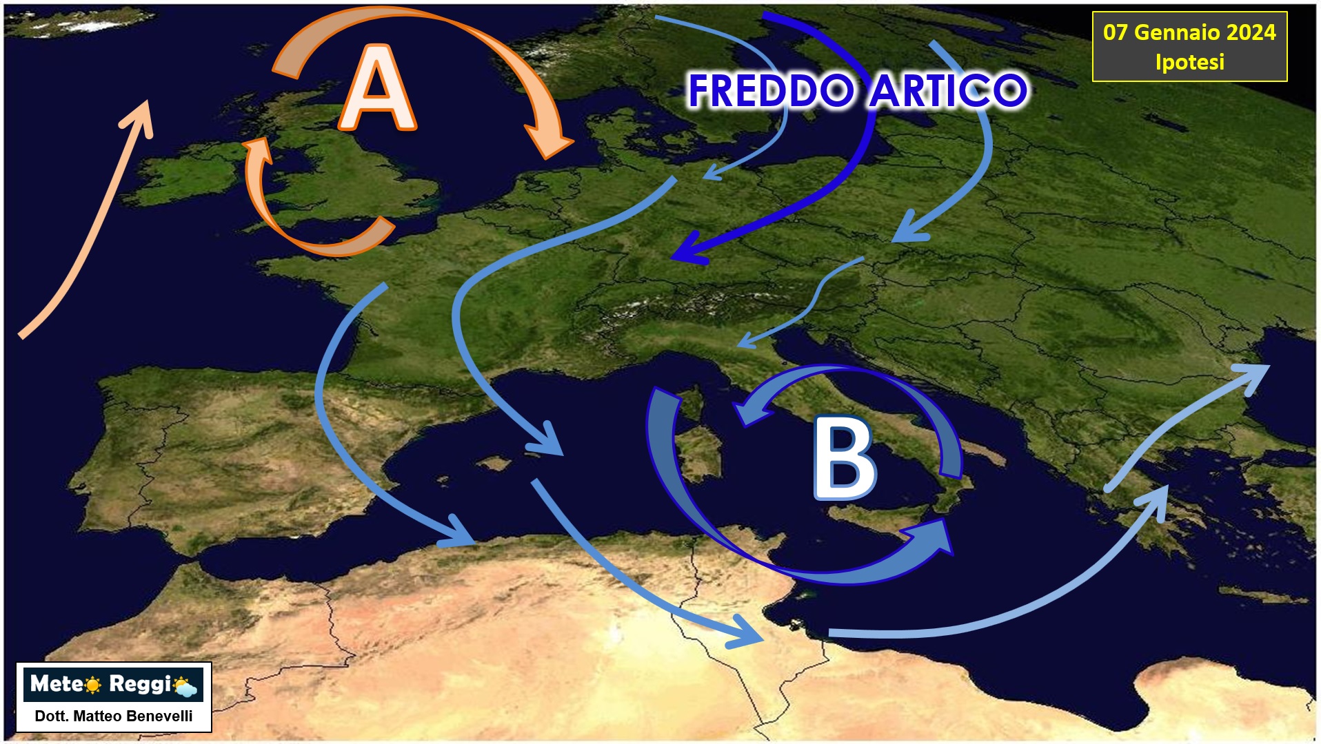 Qualcosa sta cambiando nell'aria, finalmente una bassa pressione prenderà forma nel cuore del nostro stivale richiamando quella potente goccia di aria fredda presente sulla Scandinavia da qualche giorno. Una bolla che ha fatto precipitare le temperature in Svezia fino a -43°C, non male se paragonate ai +20°C del bacino Mediterraneo. Un mostruoso sbalzo di 60°C in meno di 2.000 Km di linea d'aria.