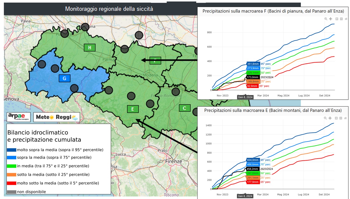 Accumuli buoni anche in termini di pioggia con i pluviometri che anche in centro a Reggio Emilia si sono portati oltre i 40 mm.