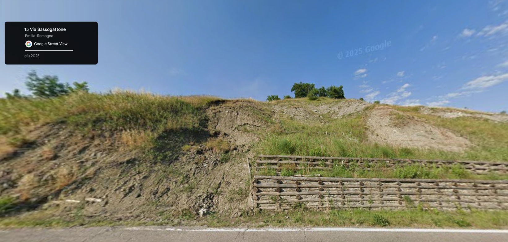 La strada provinciale in zona Sasso Gattone corre lungo un versante storicamente delicato. Il movimento odierno ha spinto la carreggiata verso valle, costringendo i tecnici a intervenire con urgenza per stabilizzare il piede della frana e mantenere la comunicazione tra la collina e la zona delle ceramiche.