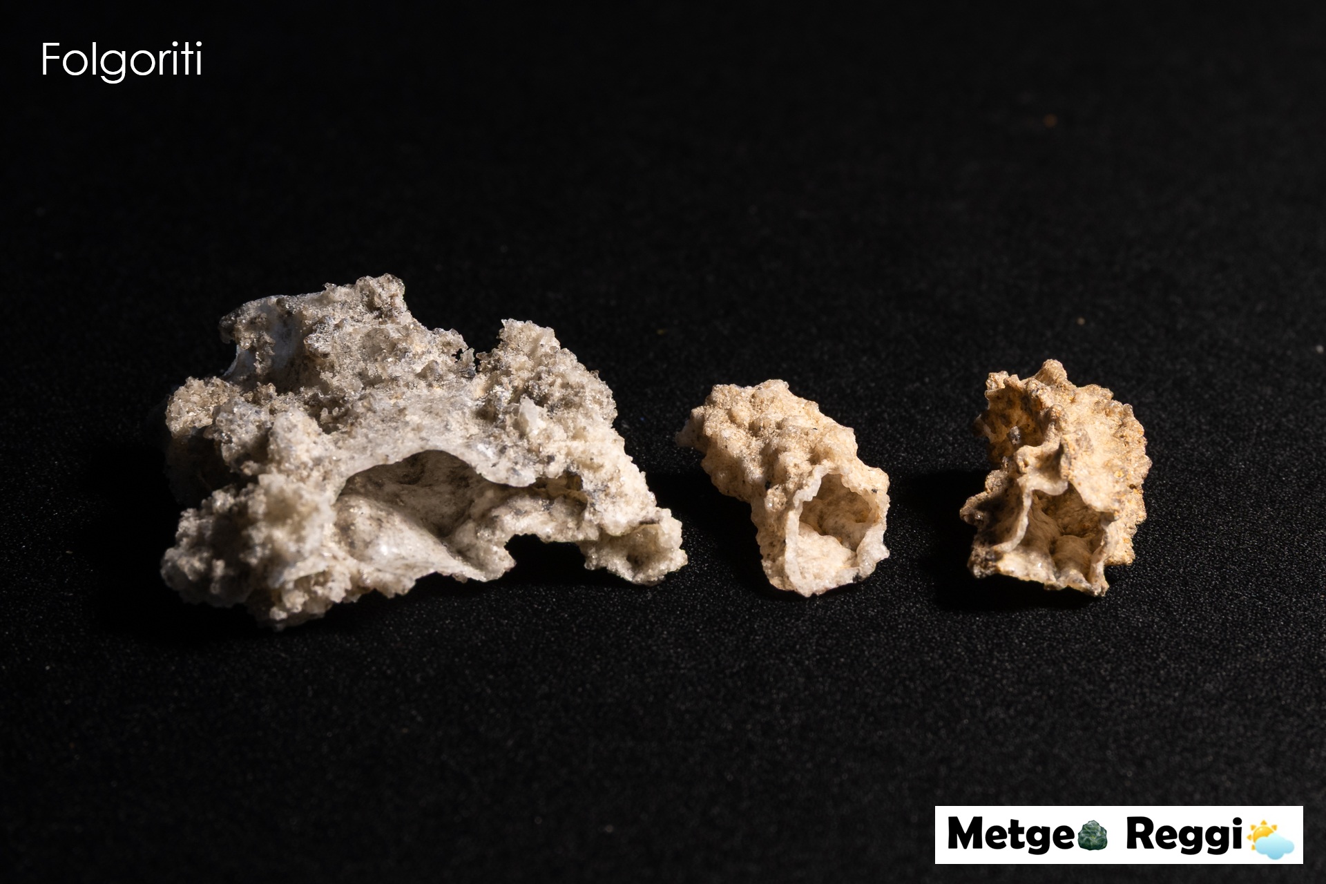 Dall'immagine della nostra collezione, potete notare tre diversi esemplari di folgorite che mostrano bene la loro natura "cava":