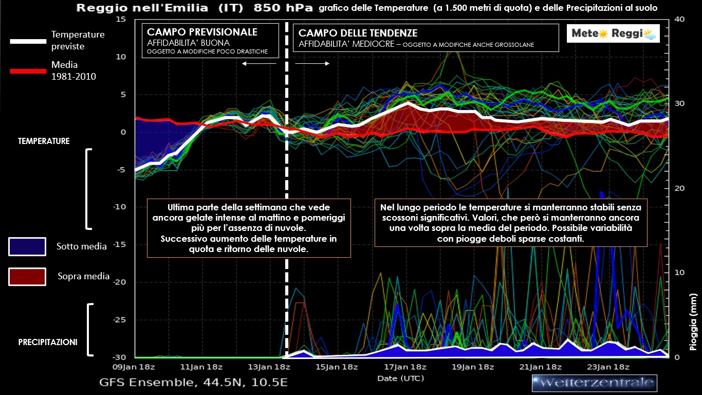 Nell'immediato avremo delle giornate serene con gelate mattutine e notturne discrete, ma presto torneranno le nuvole ad ingrigire il cielo e rendere uggiosa l'atmosfera reggiana.