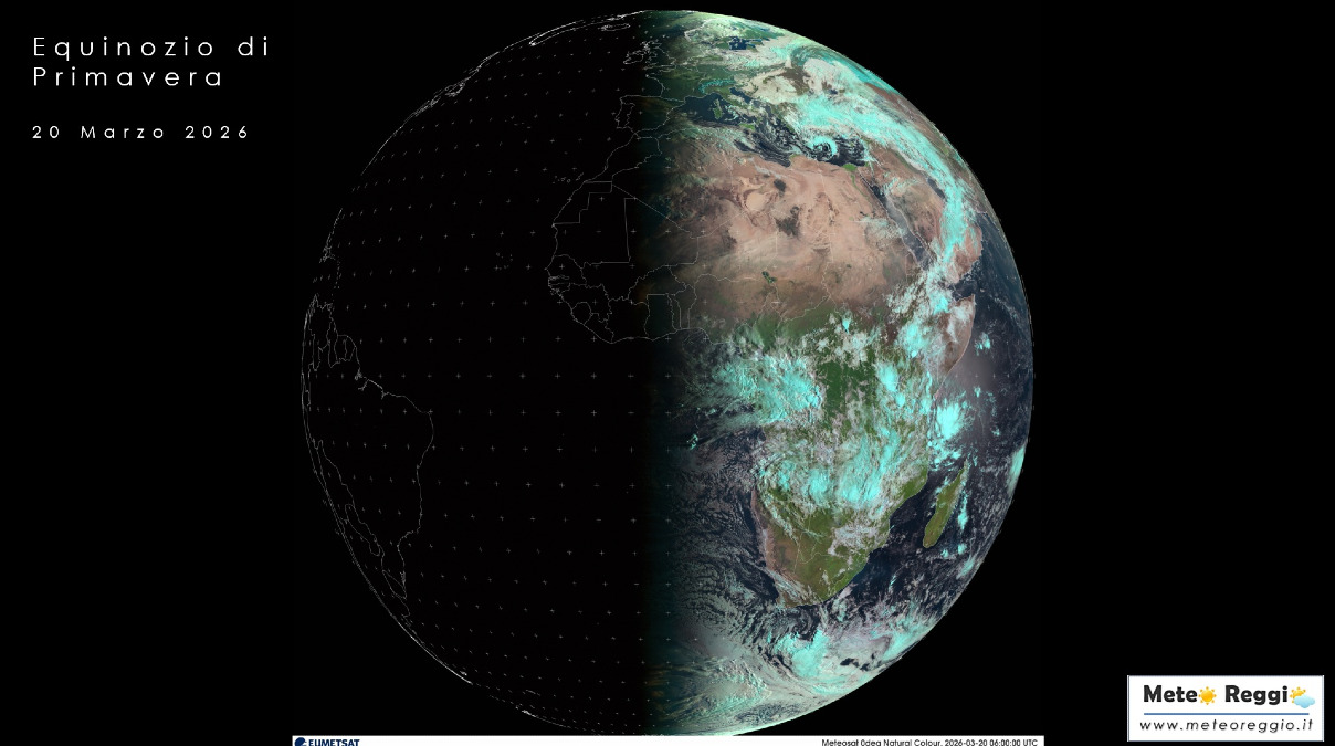 Buon equinozio! E che meraviglia da satellite, lo scatto di oggi è spettacolare: mostra perfettamente il "terminatore", ovvero la linea d'ombra che oggi taglia la Terra esattamente in due, collegando il Polo Nord al Polo Sud. Ma perché arriva il 20 e non il 21 marzo l'equinozio? Eccovi qualche informazione per spiegare questo "anticipo" e il fascino astronomico e culturale di questa giornata.