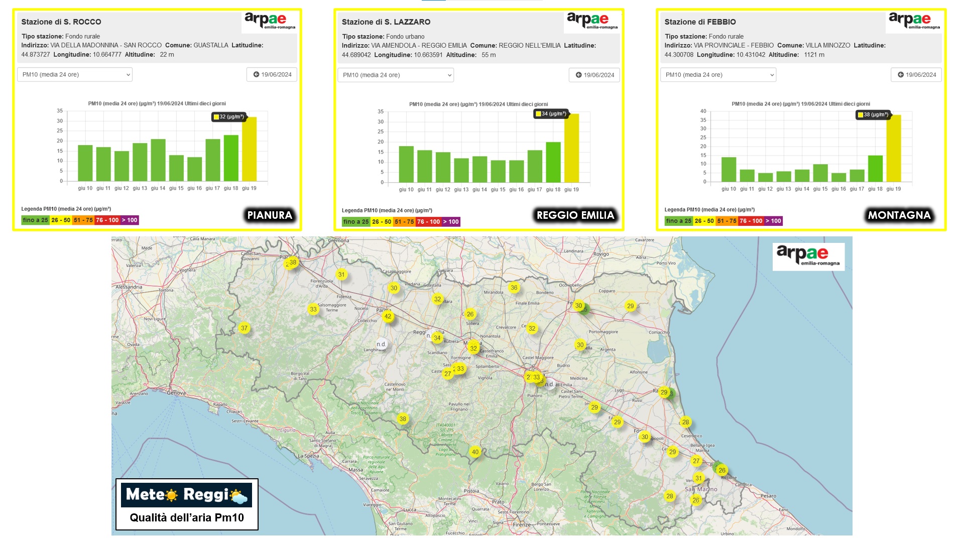 Come si vede dai grafici ARPAE le concentrazioni più alte vengono registrate in Montagna con meccanica opposta a quello che accade in inverno quando l'inquinamento antropico arriva dal basso e non dall'alto.